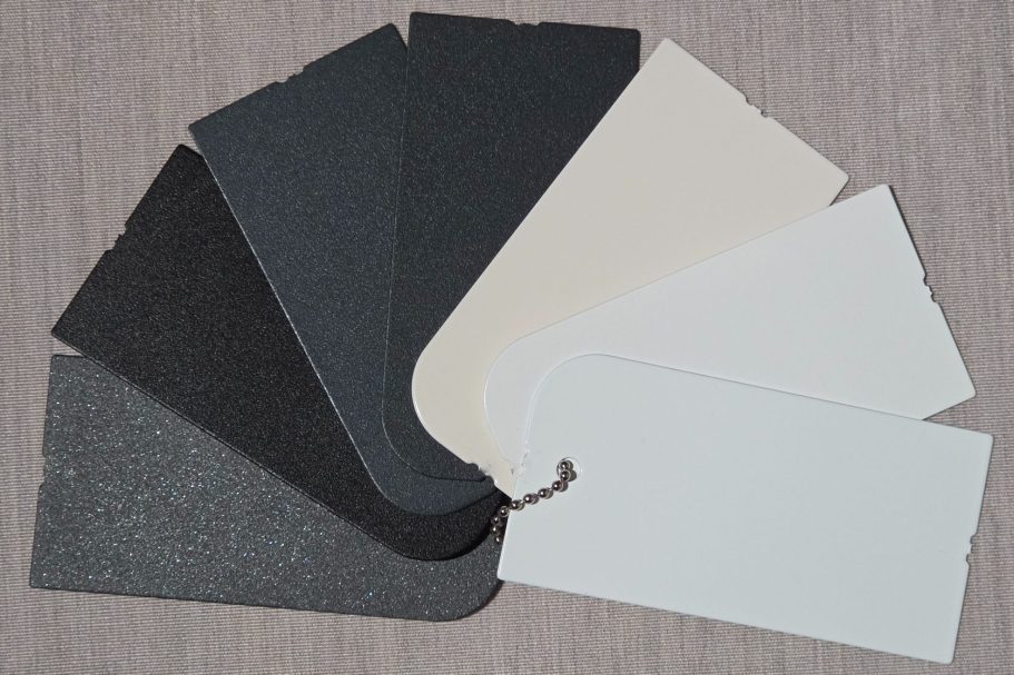 Bij de screens kunt u kiezen uit 7 standaard systeemkleuren: RAL 9001, 9010 mat, 9016, 7016 FS, 7021 FS, 9005 FS en Black Metallic structuur.