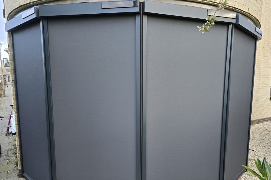 Onze screens blijven ook bij veel wind super strak staan, ideaal voor de zonnige dagen met veel wind.
